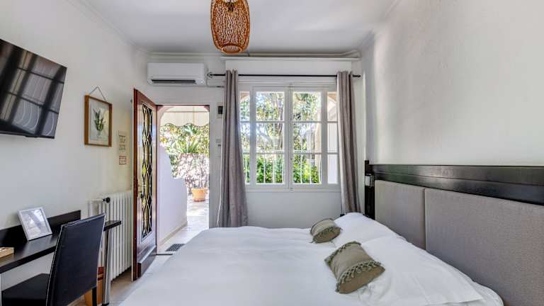 Die Zimmer im Hotel La Garoupe-Gardiole sind komfortabel eingerichtet und verfügen über kostenfreies WLAN. Alle Zimmer sind klimatisiert und einige bieten einen eigenen Balkon mit Blick auf den Pool.