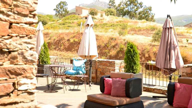 Das Hôtel la Palma liegt idyllisch eingebettet in den Weinbergen von Patrimonio. Die malerische Umgebung lädt zu Spaziergängen und Erkundungen ein. Der Strand von Saint Florent ist nur eine kurze Fahrt entfernt und bietet die Möglichkeit, sich am Meer zu entspannen und die Sonne zu genießen. Das charmante Dorf Nonza ist ebenfalls gut erreichbar und lockt mit seinen historischen Gebäuden und seiner atemberaubenden Aussicht. Der Flughafen Bastia ist mit dem Auto in etwa 45 Minuten erreichbar.