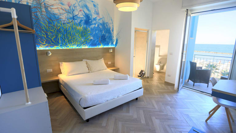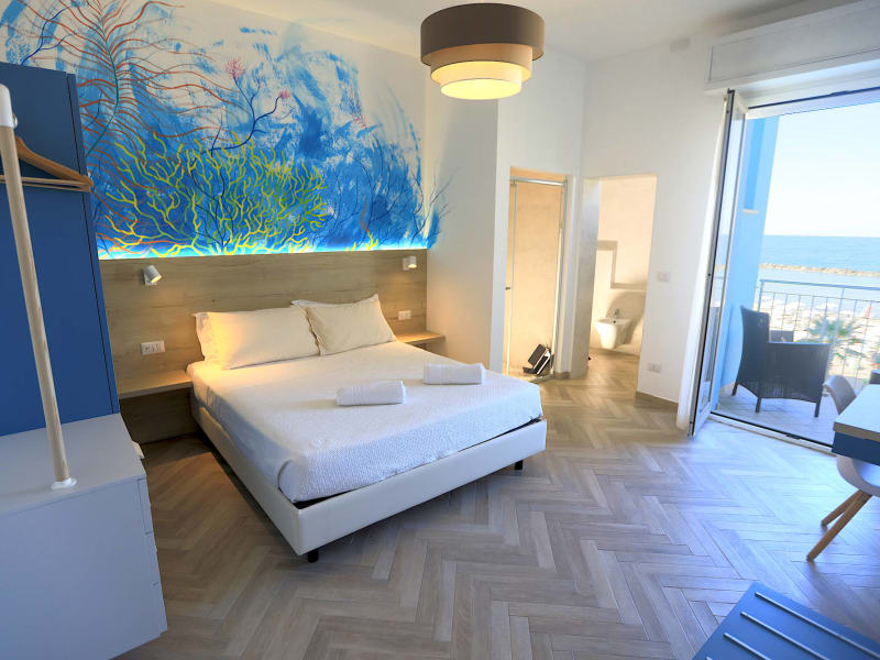 Alle Zimmer sind einfach und komfortabel ausgestattet, um Ihren Urlaub für Sie so entspannend und bequem wie möglich zu machen. In den letzten Jahren sind viele Renovierungen vorgenommen worden. Es gibt 4 Zimmertypen, also etwas für jeden Bedarf und Geschmack, die jedes Jahr mit Neuheiten aufwarten können. SUITE "MARE" Die Krönung unseres Hotels ist die Suite Mare, die in jeder Hinsicht als Mini-Apartment angesehen werden kann. 70 m² + 8 m² Terrasse mit einem herrlichen Meerblick werden Ihnen den Atem verschlagen. Dank der perfekten Schalldämmung und Einrichtung mit Naturmaterialien in hellen, entspannenden Farben ist unsere Suite Mare wirklich einzigartig. Sie verfügt über eine Entspannungszone mit Smart TV, Kochnische (mit Induktionsplatte, Wasserkocher, Espresso-Maschine und Kühlschrank), einen Schlafbereich mit Doppelbett und ein zweites Schlafzimmer mit sein eigenem Fernsehen un Klimaanlage. Im eleganten Bad mit großer Walk-in-Wasserfall-Dusche und Meerblick werden Sie herrliche Momente der Entspannung erleben. Es gibt nur eine Suite Mare, willst du wissen, ob sie noch frei ist? - 70 m2 Oberfläche und zweite (Kinder-) Zimmer - Terrasse und Panoramafenster mit Meerblick - Dusche mit Wasserfall Massagen und Meerblick - Hochwertige Memory-Matratzen und Kissen - Küche - Cinema (Wohnzimmer mit 4K-50 Zoll TV, Glasfaser angeschlossen) - schnelles Glasfaser WLAN - Klimaanlage - Schalldämmung SUPERIOR ZIMMER Viel mehr als ein Standard Zimmer, mit seinen geräumigen Abmessungen, ist es die ideale Lösung für eine Familie oder für diejenigen, die es einfach lieben, bequem zu sein. Einige blicken auf das Meer, andere auf die Bergseite. avatar di DanieleDaniele Die Wahl für diesen Typ ist schwierig und ich erkläre Ihnen warum: einige haben ein Doppel-Badezimmer, d. h. ein vom Badezimmer getrenntes Zimmer, das einer grossen begehbaren Dusche mit Steinsitz und Massage-Wasserfall gewidmet ist, andere haben eine grosse Terrasse mit Meerblick, Doppel-Badezimmer, aber ein etwas kleinere Dusche, welches bevorzugen Sie? sich von einer luxuriösen Dusche verwöhnen lassen oder sich sonnen auf der Terrasse am Meer? Rufen Sie uns direkt an, wir helfen Ihnen gerne weiter! - Smart TV 43" Samsung (verbundet mit Netflix 4K, Disney, Amazon) - Badezimmer, Walk-in Dusche - einigen mit grossen begehbaren Dusche mit Steinsitz und Wasserfall Massagen - Hochwertige Memory-Matratzen und Kissen - schnelles Glasfaser WLAN - Klimaanlage - Kühlschrank - Terrasse - Schalldämmung FAMILY ZIMMER Es handelt sich um zwei Zimmer mit Verbindungstür (50 m² insgesamt große), in der bequem 5 Personen untergebracht werden können, auf der 4. und letzten Etage des Hotels. Nach umfassende Renovierungsarbeiten wurde diese wunderbare Alternative für alle geschaffen, die gerne in der besonderen, geschützten Atmosphäre einer Mansarde entspannen. Die Renovierung erfolgte unter Berücksichtigung der neuesten Bau-, Umweltverträglichkeits- und Nachhaltigkeitsstandards der Energienutzung. So wurde für eine perfekt isolierte Decke Balken und Holzverkleidungen aus Tannenholz verwendet, die zusammen mit einem geräumigen Belüftungsraum zum Dach hin auch an den heißesten Tagen eine optimale Zimmertemperatur garantieren. Diese neuen Zimmer unterscheiden sich durch warme Farben und die Verwendung von Naturmaterialien. Sie besitzen zwar keinen Balkon, sind aber dank der vielen Fenster und Strahler sehr hell. Sie verfügen über ein großes Badzimmer mit einer Walk-in-Dusche und zwei Waschbecken. STANDARD ZIMMER Stehen als Doppel-, Dreibett- oder Vierbettzimmer (mit Stockbett) zur Verfügung. Sie befinden sich in der ersten, zweiten oder dritten Etage und sind komfortabel und funktionell. Alle Zimmer vom Typ Standard verfügen über Bad/WC mit Duschkabine und Balkon und sind mit Klimaanlage, Mini-Kühlschrank, Fön sowie 40“ Fernseher ausgestattet. - WLAN - Klimaanlage - TV 40" - Mini-Kühlschrank - Haartrockner - Balkon - schalldicht Tur