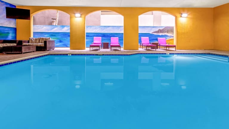Das Hotel La Quinta by Wyndham Anaheim ist die perfekte Wahl für einen Aufenthalt in Anaheim, besonders für Besucher des Disneyland Freizeitparks, der nur 5 Fahrminuten entfernt liegt. Das Hotel bietet eine komfortable und entspannte Atmosphäre mit einem überdachten Außenpool und einem leckeren kontinentalen Frühstück. Die Suiten sind Nichtraucherzimmer und verfügen über kostenfreies WLAN sowie eine moderne Ausstattung, einschließlich Flachbild-TV, Mikrowelle und Kühlschrank. Das freundliche Personal an der 24-Stunden-Rezeption steht Ihnen jederzeit zur Verfügung und das Hotel bietet auch ein Businesscenter, ein Fitnesscenter und einen Waschsalon. Die Lage des Hotels ist ideal, nur 1,6 km vom Kongresszentrum Anaheim Convention Center entfernt und in der Nähe von Flughäfen wie John Wayne und Long Beach.