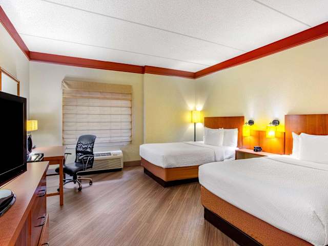 Die 134 Zimmer und 5 Suiten des La Quinta Inn and Suites Crabtree erstrecken sich über 5 Etagen und sind über einen Aufzug erreichbar. Die Zimmer sind komfortabel und mit Annehmlichkeiten wie Flachbild-Kabel-TV, Klimaanlage, Kaffeemaschine, Mikrowelle und kostenfreiem WLAN ausgestattet. Jedes Zimmer verfügt auch über ein eigenes Badezimmer mit Haartrockner. Es stehen auch rollstuhlgerechte Zimmer zur Verfügung.