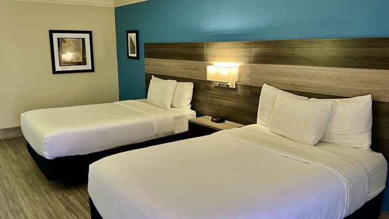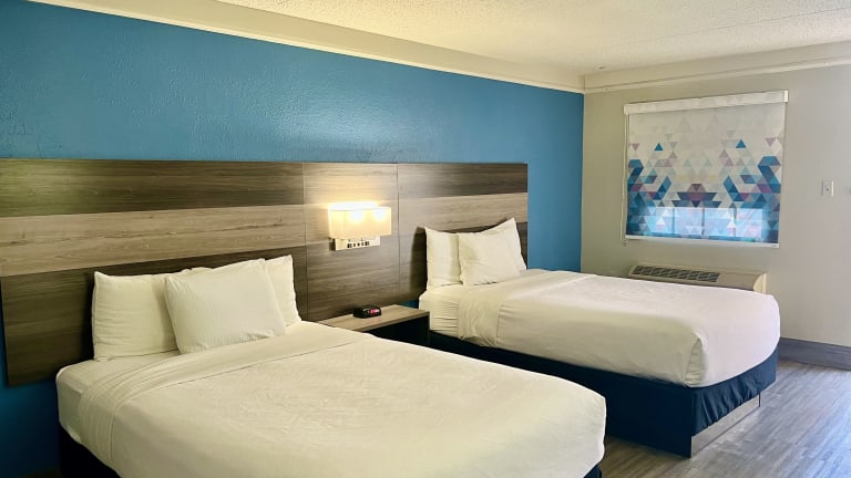 Die Zimmer im Hotel sind mit Klimaanlage, Heizung und Teppichboden ausgestattet und bieten ein Doppelbett oder ein Kingsize-Bett. Weitere Annehmlichkeiten umfassen einen Schreibtisch, einen Kühlschrank, eine Mikrowelle sowie eine Tee-/Kaffeemaschine. Jedes Zimmer verfügt über ein Badezimmer mit Dusche und Badewanne, einen Haartrockner sowie kostenlose Pflegeprodukte. Die Unterkünfte sind sowohl als Nichtraucher- als auch als Raucherzimmer buchbar und beinhalten rollstuhlgerechte Optionen.