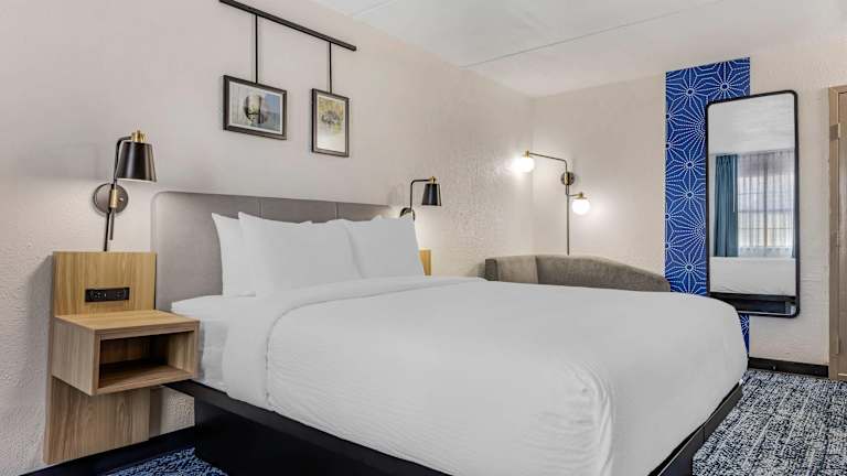 Das Hotel La Quinta Inn Merrillville verfügt über 121 Zimmer, die auf zwei Etagen verteilt sind. Jedes Zimmer ist komfortabel eingerichtet und verfügt über eine Klimaanlage, ein Doppelbett und einen Schreibtisch. Zur Ausstattung gehören auch ein Kühlschrank, eine Mikrowelle und eine Tee-/Kaffeemaschine. WLAN ist im gesamten Hotel verfügbar und ein Flachbildfernseher mit Kabelempfang sorgt für Unterhaltung. Die Badezimmer sind mit einer Dusche, einem Haartrockner und Bademänteln ausgestattet. Rollstuhlgerechte Zimmer sind ebenfalls verfügbar.