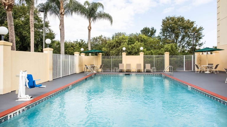 Das La Quinta Inn and Suites Melbourne Viera ist ein komfortables Hotel in günstiger Lage direkt an der Interstate 95. Mit täglichem kontinentalem Frühstück und einem Außenpool bietet das Hotel alles, was man für einen angenehmen Aufenthalt benötigt. Die Zimmer sind mit modernen Annehmlichkeiten ausgestattet, darunter kostenfreies WLAN, eine Mikrowelle und ein kleiner Kühlschrank. Das Hotel verfügt auch über ein Fitnesscenter und einen Waschsalon.