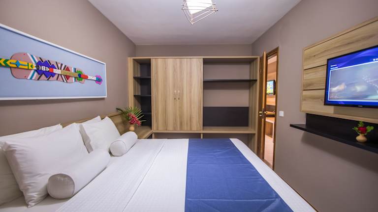 Das Resort verfügt über 260 komfortable Unterkünfte in verschiedenen Kategorien. Jedes Zimmer ist mit Klimaanlage, Smart-TV, Minibar, Telefon, Haartrockner, Balkon und eigenem Bad ausgestattet. Hier finden Sie alles, was Sie für einen angenehmen Aufenthalt benötigen.