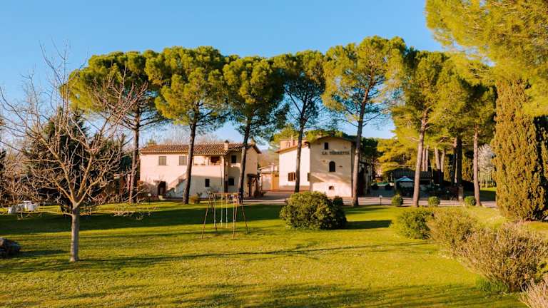 Das Hotel La Torretta befindet sich am Fuße der wilden Hügel rund um Assisi, eingebettet in eine üppige mediterrane Vegetation. Die Unterkunft grenzt an einen kleinen Fluss und bietet einen wunderschönen Blick auf das umliegende Land und die Hügel. In der Umgebung gibt es viele landwirtschaftliche Betriebe, die die Gegend charakterisieren. Assisi ist nur 5 km entfernt und auch die Städte Perugia, Florenz und Rom sind in weniger als 2 Autostunden erreichbar.
