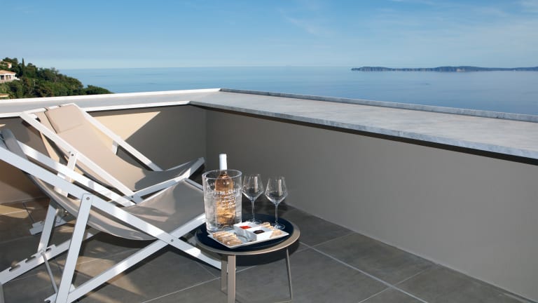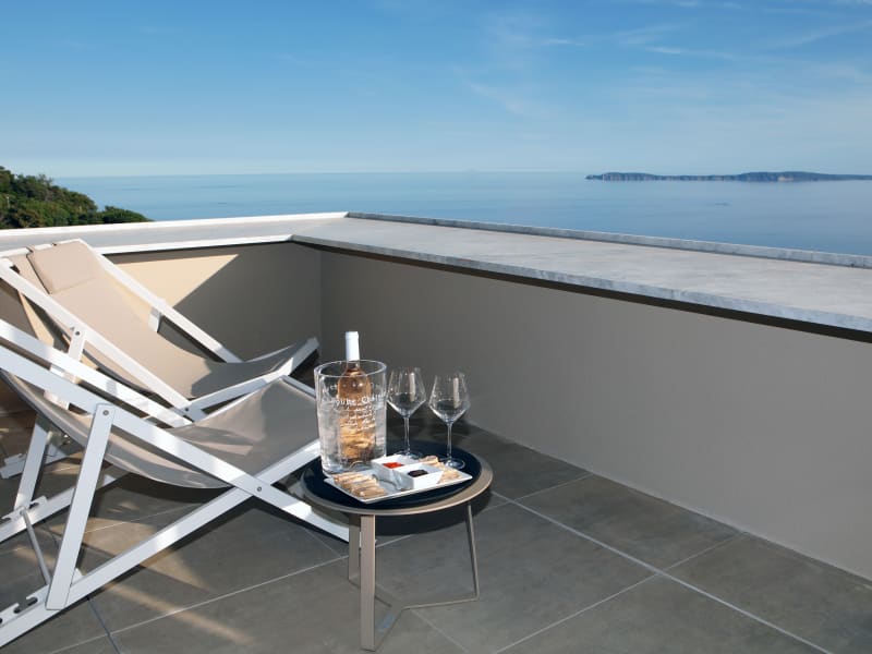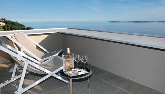 Ganzjährig geöffnet (Geschlossen: 20. November 2022 bis 14. Januar 2023) Luxuriöses 4-Sterne-Hotel, ganzjährig geöffnet. La Villa Douce **** empfängt Sie auf den Hügeln von Rayol Canadel Sur Mer, einem der am besten erhaltenen Dörfer des Var, im Herzen der Region Saint-Tropez. Ideal gelegen zwischen Saint-Tropez und Le Lavandou und nur wenige Minuten von den Stränden entfernt, ist La Villa Douce **** mehr als ein intimes Hotel. Es ist ein Paradies, versteckt zwischen Himmel und Meer. Sie werden eine der schönsten Aussichten der französischen Riviera entdecken. Die 31 Zimmer und Suiten des La Villa Douce **** verfügen über eine Terrasse oder einen Balkon mit einem 180°-Panoramablick auf das Meer und die Goldenen Inseln. Ein Paradies für Liebhaber atemberaubender Landschaften. Eine außergewöhnliche Umgebung in ständiger Bewegung während des Tages und der Jahreszeiten. La Villa Douce **** ist eine Einladung zur Entspannung. L'hôtel La Villa Douce **** ist ein vertrauliches Hotel, das Folgendes bietet: Ein in der Saison beheiztes Außenschwimmbad Ein Restaurant "Le Café 1'Envol" Ein Massageraum Eine Bar, von der aus Sie den herrlichen Sonnenuntergang bewundern können Und viele Dienstleistungen während der Saison: Shuttle, Jazz-Abend Das Restaurant "Le Café'Envol", das auch für externe Gäste geöffnet ist, bietet eine mediterrane Küche von unserem Chefkoch Zivorad Markovic. Als intimes Hotel für einen außergewöhnlichen Aufenthalt ist das Hotel La Villa Douce **** auch der ideale Ort, um Seminare, Geschäftstreffen und Firmenessen zu organisieren. Eine luxuriöse Erfahrung in völliger Ruhe, zwischen Himmel und Meer, die zum Nachdenken anregt. Ein einzigartiges Angebot, das alle High-Tech-Infrastrukturen bietet: Overhead-Projektor, Leinwand, Wi-Fi, usw...)