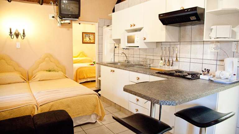 Das Lalapanzi Hotel & Conference Centre in Bandelierkop ist ein charmantes Tudor-Stil-Hotel an der N1, das Ihnen gemütliche Zimmer mit Zugang zu einem schönen Garten und kostenfreiem WLAN bietet. Genießen Sie Ihren Aufenthalt in diesem einladenden Hotel, das über einen Swimmingpool und eine Vielzahl von Tieren auf dem Gelände verfügt. Entdecken Sie das Skirmishes Museum, das sich direkt in der Unterkunft befindet. Die weiß getünchten Gebäude mit Reetdächern verleihen den Zimmern einen besonderen Charme. Jedes Zimmer ist mit Sat-TV, einem Sitzbereich und Kaffee- und Teezubehör ausgestattet. Einige Zimmer verfügen über eine Küchenzeile und einen eigenen Grill. Im Innenbereich steht Ihnen ein gemeinsamer Grillbereich zur Verfügung. Das hoteleigene Restaurant serviert regionale Gerichte, darunter Wildgerichte. Starten Sie Ihren Tag mit einem leckeren Frühstück, das Ihnen auf Ihrem Zimmer serviert wird. Entspannen Sie sich auch in der Snackbar oder haben Sie Spaß bei Karaoke und Billard in der Bar. Das Lalapanzi Hotel bietet Ihnen auch Annehmlichkeiten wie ein Trampolin und einen Fahrradverleih. Das freundliche Personal an der 24-Stunden-Rezeption gibt Ihnen gerne Informationen über Touren zu historischen Stätten des Burenkrieges, Safaris und Wanderungen. Die Stadt Louis Trichardt erreichen Sie nach 28 km und Polokwane nach 80 km. Der Flughafen Wonderboom Aerodrome in Pretoria ist 334 km entfernt, und ein Flughafentransfer kann für Sie arrangiert werden. Ihr Fahrzeug können Sie kostenfrei auf dem Hotelgelände parken.