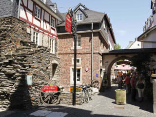 Das Hotel Altes Stadttor in Kastellaun bietet seinen Gästen einen historischen Aufenthalt inmitten der malerischen Altstadt. Das Hotel besticht mit seiner Fachwerk-Fassade, die sich perfekt in die alte Stadtmauer einfügt. Die Zimmer sind hell und mit traditionellen Holzmöbeln eingerichtet. Das Restaurant serviert ein köstliches Frühstücksbuffet und Gerichte der regionalen Küche im gemütlichen Gewölbekeller. Die Hotelterrasse lädt zum Entspannen im Freien ein. Umgeben von Wander- und Radwegen ist das Hotel der ideale Ausgangspunkt für Aktivitäten in der schönen Hunsrücker Landschaft.