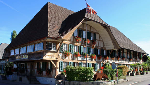 Der Landgasthof Bären liegt direkt gegenüber dem Bahnhof Madiswil, was ihn zu einer idealen Wahl für Reisende macht, die mit öffentlichen Verkehrsmitteln anreisen. Das Gästehaus befindet sich am Eingang zum Emmental, einer malerischen Region, die für ihre sanften Hügel, grünen Wiesen und traditionellen Schweizer Bauernhäuser bekannt ist. Von hier aus können Sie auch problemlos Tagesausflüge nach Basel, Bern und Zürich unternehmen, da sie alle innerhalb einer Entfernung von 70 km liegen.