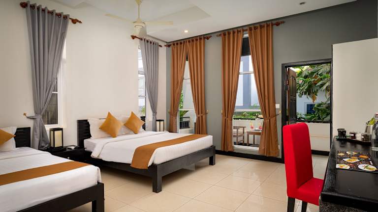 Das Landing Zone Boutique Hotel in Siem Reap bietet seinen Gästen einen angenehmen Aufenthalt in einer schönen Umgebung. Das freundliche Personal an der Rezeption steht den Gästen jederzeit zur Verfügung und bietet Unterstützung bei der Buchung von Ausflügen. Der Garten und der Außenpool laden zur Entspannung ein. Das Hotel verfügt über ein Restaurant und ein Café, in dem täglich ein leckeres Frühstück serviert wird. Die Zimmer sind komfortabel ausgestattet und verfügen über Klimaanlage, Mikrowelle, Kaffeemaschine und einen Flachbildfernseher. Einige Zimmer bieten auch eine Whirlwanne.