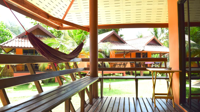 Die Bungalows im Lanta Pearl Beach Resort sind im traditionellen Thai-Stil eingerichtet und verfügen über Möbel aus Hartholz. Jeder Bungalow bietet einen eigenen Balkon mit Gartenblick und einer gemütlichen Hängematte. Die Badezimmer sind mit Duschen ausgestattet. Kostenloses WLAN ist in allen Unterkünften verfügbar.