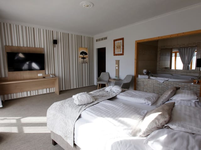 Das Wellness Hotel Laroba bietet verschiedene Erholungseinrichtungen, darunter eine Sauna, ein Solarium und Dampfbäder. Hier können Sie sich entspannen und neue Energie tanken. Darüber hinaus können Sie die malerische Umgebung des Plattensees erkunden und Aktivitäten wie Schwimmen, Bootfahren oder Radfahren unternehmen. Das Hotel bietet auch kostenfreie Parkplätze für Ihre Bequemlichkeit.