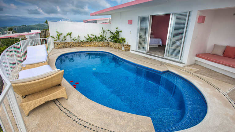 Das Hotel befindet sich auf einem Hügel und bietet einen atemberaubenden Blick auf den Strand von Acapulco und den mexikanischen Pazifik. Bars und Diskotheken sind etwa 3 km entfernt und Einkaufsmöglichkeiten erreichen Sie nach etwa 20 Autominuten. Das Stadtzentrum von Acapulco ist ca. 25 km entfernt und der Flughafen von Acapulco liegt in etwa 1 km Entfernung.