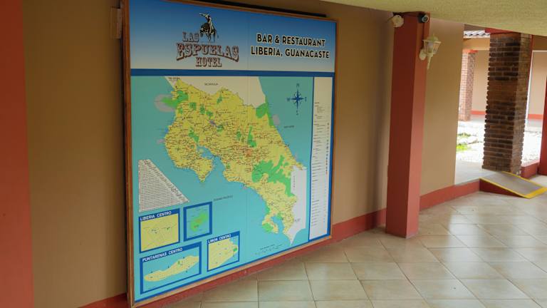 Das Hotel Las Espuelas, Bar & Restaurant liegt außerhalb von Liberia und bietet eine günstige Lage, um die Umgebung zu erkunden. In nur 30 Fahrminuten erreichen Sie den Vulkan Rincón de la Vieja, einen beeindruckenden Vulkan mit faszinierender Landschaft. Ebenso ist der Strand Playa Coco in der Nähe, der perfekt für Sonnenanbeter und Wassersportler ist. Der Nationalpark Palo Verde ist ebenfalls leicht erreichbar und bietet eine vielfältige Tierwelt. Der internationale Flughafen Daniel Oduber Quirós ist nur 15 km entfernt und sorgt für eine bequeme Anreise.