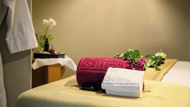 Das Las Suites verfügt über einen Außenpool mit Liegestühlen und einer Sonnenterrasse. Ein Whirlpool und ein Fitnessraum stehen den Gästen ebenfalls zur Verfügung. Im Wellnessbereich können Gäste verschiedene Behandlungen wie Massagen, Spa-Anwendungen, Sauna, Dampfbad, Hammam, Hydrotherapie und Solarium genießen.