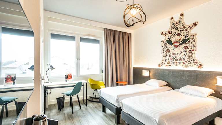Das Hotel verfügt über 64 Zimmer auf 5 Etagen, die bequem mit dem Aufzug erreichbar sind. Die Zimmer sind klimatisiert und bieten ein komfortables Doppelbett. Zur Ausstattung gehören ein großer Schreibtisch, ein Telefon und ein Flachbild-TV mit Satellitenempfang. Die privaten Badezimmer sind mit einer Dusche, einer Badewanne und einem Haartrockner ausgestattet. Familienzimmer stehen ebenfalls zur Verfügung.