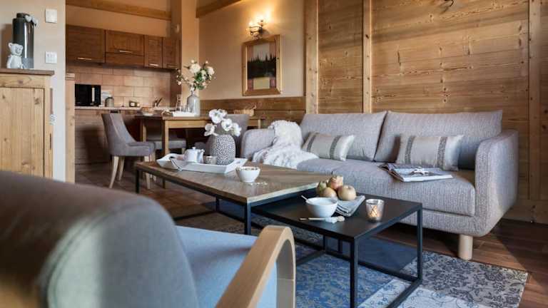Die Apartments im Le Hameau de la Sapinière bieten Platz für bis zu 10 Personen und verfügen über ein geräumiges Wohnzimmer sowie eine gut ausgestattete Küchenzeile. Hier finden Sie alles, was Sie für die Selbstverpflegung benötigen, einschließlich Backofen, Kühlschrank, Geschirrspüler und Mikrowelle. Auf Anfrage sind auch ein Flachbild-TV und ein DVD-Player erhältlich.