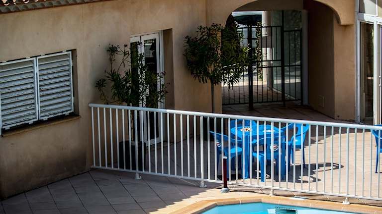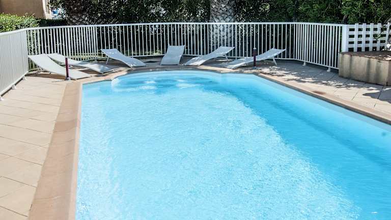 Das Hôtel Le Leukos bietet Unterkünfte zur Selbstverpflegung in einer Residenz mit einem Außenpool. Die Anlage ist von einem Garten mit Olivenbäumen und Palmen umgeben. WLAN steht in allen Bereichen kostenfrei zur Verfügung.