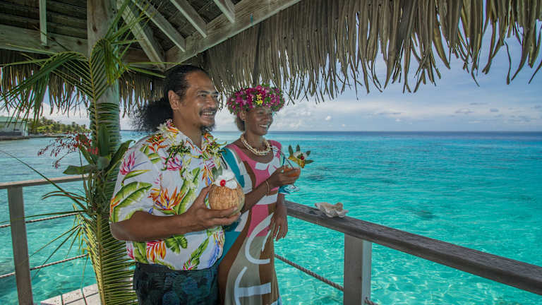 Das Restaurant Lagon Blue serviert französische, polynesische und internationale Spezialitäten zum Mittag- und Abendessen. Hier können die Gäste eine Vielzahl von Gerichten genießen, während sie die Aussicht auf die Lagune bewundern. An der Bar Mawake können Sie tropische Cocktails in entspannter Atmosphäre genießen.