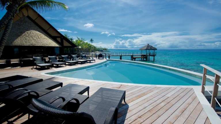 Das Hotel verfügt über 38 Bungalows im polynesischen Stil, die mit Annehmlichkeiten wie einer Minibar, Tee- und Kaffeezubehör, einem Flachbild-TV und einem eigenen Bad mit Pflegeprodukten und Haartrockner ausgestattet sind. Die Bungalows bieten entweder einen Gartenblick oder einen atemberaubenden Blick auf die Lagune.
