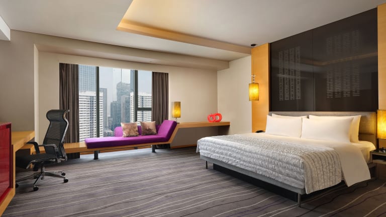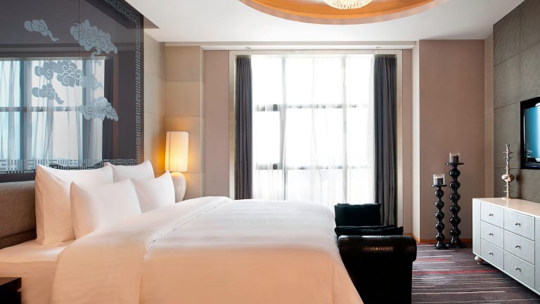 Die geräumigen Gästezimmer im Le Meridien Qingdao sind modern eingerichtet und verfügen über eine vollständige Klimaanlage. Jedes Zimmer ist mit einem Safe, einem Wasserkocher und einem Flachbild-TV ausgestattet. Das Badezimmer bietet kostenlose Pflegeprodukte und einen Haartrockner.
