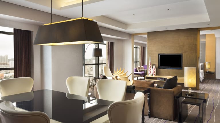 Das Le Meridien Qingdao befindet sich im neuen Geschäftsviertel von Qingdao und ist nur eine 60-minütige Fahrt vom Qingdao Jiaodong International Airport entfernt. Die Lage ist ideal, da es sich in der Nähe der Wanda Plaza befindet und nur 10 Gehminuten von der Dunhua U-Bahnstation (Linie 3) entfernt ist. Die Sehenswürdigkeiten von Qingdao, wie der Wusi Square, sind ebenfalls leicht erreichbar.