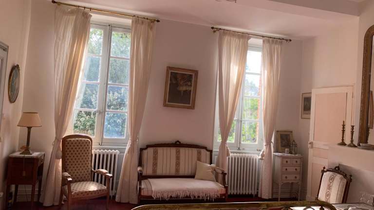 Die Suiten im Le Moulin du Carla sind geschmackvoll eingerichtet und verfügen über antike Möbel und einen gemütlichen Kamin. Jede Suite bietet ein eigenes Bad mit Badewanne oder Dusche und einen wunderschönen Blick auf den Garten. Hier können Sie sich in einer einladenden und komfortablen Umgebung entspannen.
