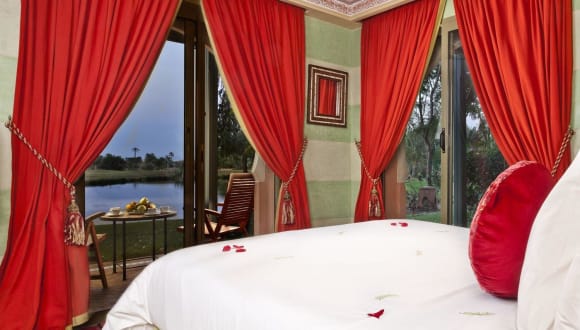 Die eleganten Apartments im Pavillon du Golf - Palmeraie suites bieten geräumige Unterkünfte mit einem Balkon, von dem aus Sie einen Panoramablick auf den Golfplatz und das Atlasgebirge genießen können. Die klimatisierten Apartments sind geschmackvoll eingerichtet und verfügen über Sat-TV und ein eigenes Bad.