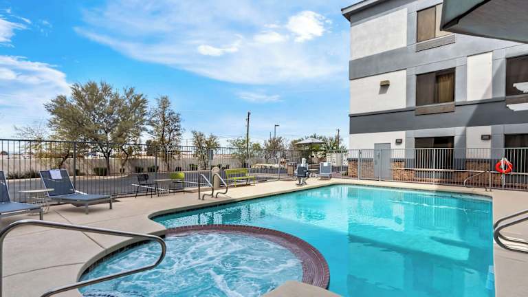 Das Legacy Inn & Suites in Mesa, Arizona, bietet seinen Gästen einen angenehmen Aufenthalt mit einem Außenpool, kostenlosem WLAN und einem kontinentalen Frühstück. Das Hotel liegt in der Nähe des Mesa Gateway Airport und bietet einen kostenlosen Shuttle-Service. Genießen Sie nach einem aktiven Tag am Pool den Whirlpool oder nutzen Sie das Fitnesscenter. Das freundliche Personal steht Ihnen rund um die Uhr zur Verfügung.