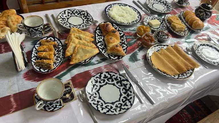 Das Hotel Legende in Samarkand bietet seinen Gästen einen komfortablen Aufenthalt mit kostenfreien Fahrrädern, einem schönen Garten, einer Terrasse und einem Restaurant. Das freundliche Personal steht Ihnen rund um die Uhr zur Verfügung und sorgt dafür, dass es Ihnen an nichts fehlt. Die Zimmer sind geräumig und verfügen über einen Balkon, von dem aus Sie die schöne Umgebung genießen können. Beginnen Sie Ihren Tag mit einem leckeren Frühstück und erkunden Sie dann die Stadt Samarkand und ihre Umgebung. Insgesamt ist das Hotel Legende die perfekte Wahl für Reisende, die Komfort und Bequemlichkeit suchen.