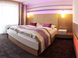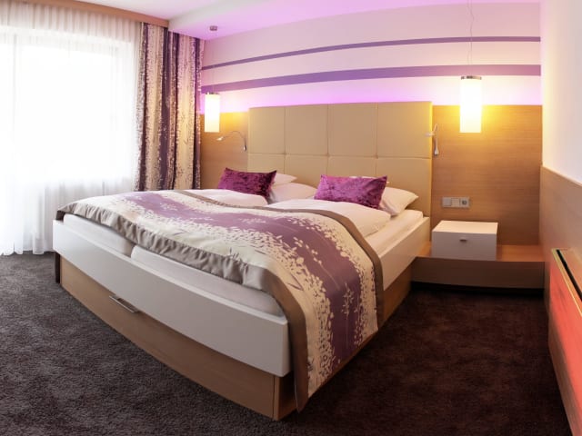In den geschmackvoll eingerichteten Suiten und Zimmern können Sie sich rundum wohlfühlen und den Urlaub entspannt genießen. Die großen Suiten haben getrennte Wohn- und Schlafräume. Alle Zimmer und Suiten sind mit rückenfreundlichen Matratzen, mit TV-Flachbildschirmen, Kühlschrank, Zimmersafe, Telefon, W-LAN sowie mit Kosmetikspiegel und Haartrockner im Bad ausgestattet. Mit dem Hotel-Lift erreichen Sie bequem alle Zimmer und Suiten, die Rezeption, das Abend-Restaurant und die Gesundheitsanwendungen.