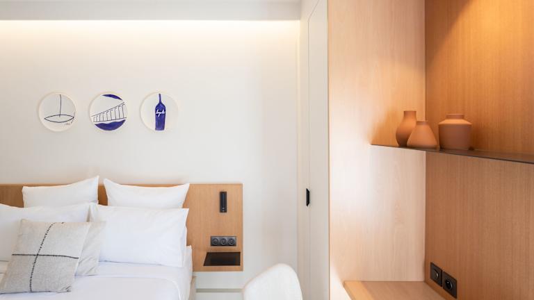 Die Zimmer im Les Elmes - Hôtel & Spa sind schallisoliert, komfortabel und klimatisiert. Jedes Zimmer verfügt über ein eigenes modernes Bad und einen gemütlichen Wohnbereich. Einige Zimmer bieten zudem einen herrlichen Meerblick.