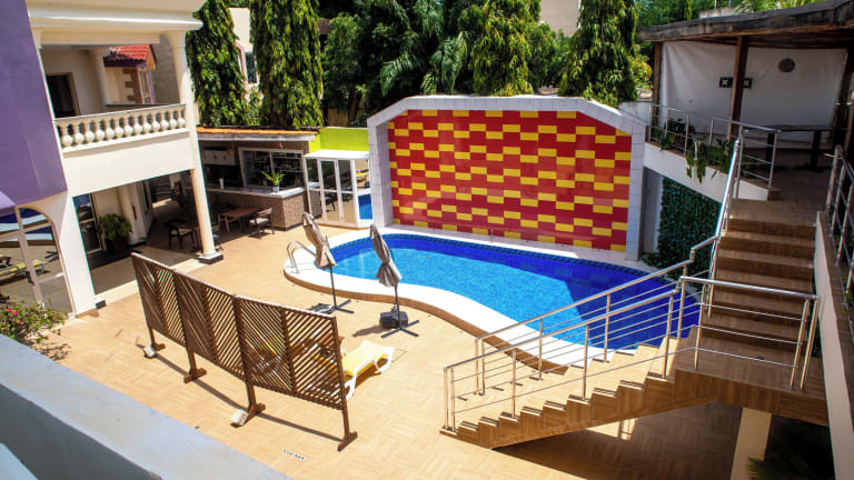 Das Hotel Les Orchidées liegt nur 2,5 km vom Strand Obama entfernt und ist somit ideal gelegen, um die Sonne und das Meer zu genießen. In der Umgebung gibt es auch einige Geschäfte und Restaurants, in denen Sie lokale Spezialitäten probieren können. Das Geschichtsmuseum Ouidah ist ebenfalls einen Besuch wert und liegt etwa 41 km vom Hotel entfernt. Der Flughafen Cotonou Cadjehoun ist nur 6 km entfernt und bietet eine gute Anbindung für internationale Reisende.