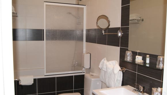 Die Zimmer im Hôtel les Platanes sind komplett renoviert und bieten den Gästen Komfort und eine angenehme Atmosphäre. Sie sind gut ausgestattet und verfügen über moderne Annehmlichkeiten wie kostenfreies WLAN, einen Flachbild-TV und eine Klimaanlage. Die Zimmer sind so gestaltet, dass sie den Gästen ein Gefühl von Unabhängigkeit und Privatsphäre vermitteln.