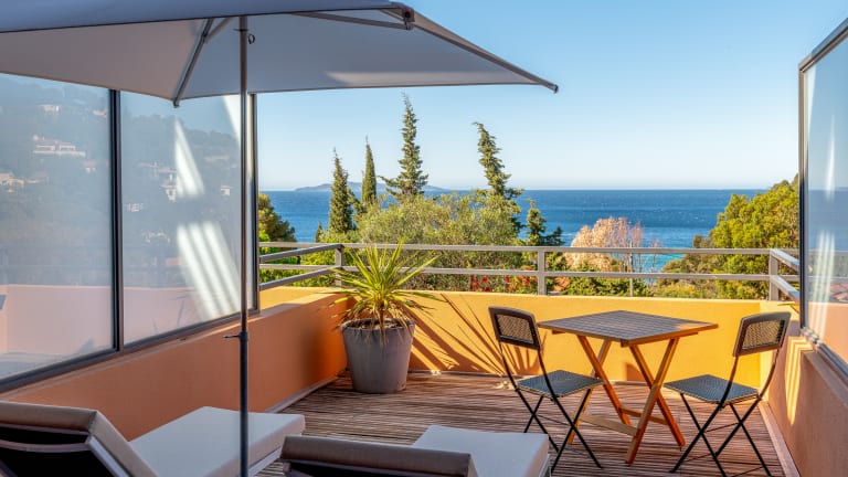 Das Hôtel*** Les Terrasses du Bailli verfügt über 24 Zimmer, davon 21 mit Meerblick und Terrasse oder Balkon. Von den geräumigen Hotelzimmern (20 bis 27 m2) in sanften Tönen, die alle nach Süden gehen, öffnet sich der Blick auf das Meer.