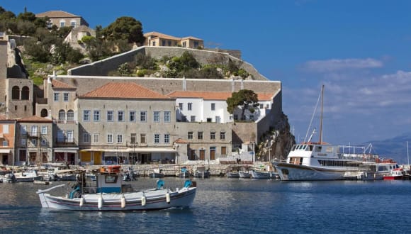 Das Hotel befindet sich auf der Insel Hydra, die Teil der Saronischen Inseln ist. Es liegt ca. 200 m vom Stadtzentrum und etwa 500 m vom Meer entfernt. Einkaufsmöglichkeiten und Restaurants sind in unmittelbarer Nähe vorhanden, wodurch sich die Umgebung für einen ruhigen Urlaub in einer traditionellen griechischen Siedlung eignet.