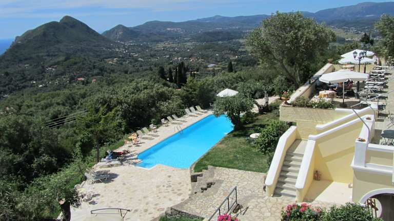 Das Levant Hotel befindet sich auf dem Hügel von Pelekas, einer malerischen Stadt 11 km westlich von Korfu. Die Lage bietet Ihnen einen atemberaubenden Blick auf das Ionische Meer. In der Nähe befinden sich unberührte Strände wie Kontoyialos, Myrtiotissa, Ermones, Agios Gordios und Glyfada. Der Wasserpark Aqualand und ein 18-Loch-Golfplatz sind ebenfalls in der Nähe.