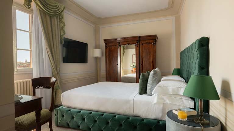 Die Zimmer im Loggiato dei Serviti sind einzigartig gestaltet und mit antiken Möbeln ausgestattet, die den Charme des historischen Gebäudes widerspiegeln. Jedes Zimmer bietet luxuriöse Stoffe, dunkle Holzmöbel und ein eigenes Badezimmer mit Haartrockner und Pflegeprodukten. Einige Zimmer verfügen über Himmelbetten oder bieten einen beeindruckenden Blick auf die Stadt. Alle Zimmer sind klimatisiert und verfügen über eine Minibar sowie Sat-TV. WLAN nutzen Sie in allen Bereichen des Hotels kostenfrei.