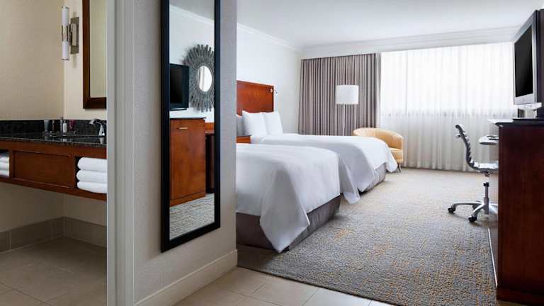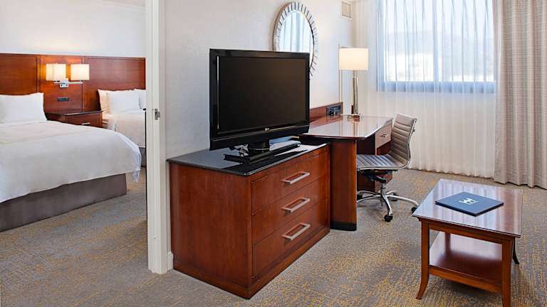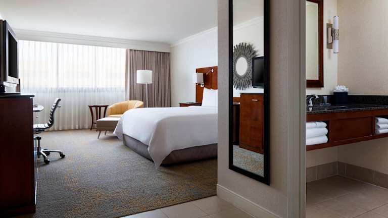 Das Los Angeles Marriott Burbank Airport liegt in Burbank, nur wenige Gehminuten von der nächsten Metrostation und dem Zentrum der Stadt entfernt. In der Umgebung finden Sie Unterhaltungsmöglichkeiten und Sehenswürdigkeiten wie die Universal Studios/City Walk, Warner Brothers und NBC. Hollywood ist nur eine kurze Autofahrt entfernt und auch das Getty Center und der Griffith Park sind gut erreichbar. Der Flughafen Burbank befindet sich direkt gegenüber dem Hotel.