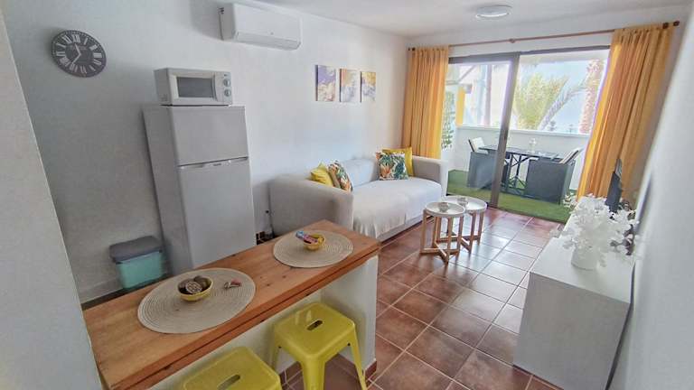 Die Ferienwohnung im Hotel Los Mangos umfasst ein Schlafzimmer und ist klimatisiert. Sie verfügt über eine Küche mit Kühlschrank, einen Flachbild-TV sowie Sitzmöglichkeiten. Handtücher und Bettwäsche sind ebenfalls vorhanden.