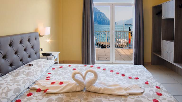 CLASSIC DOPPEL ZIMMER: mit Telefon, Sat.-TV, WLAN (kostenfrei), Safe, Tee- und Kaffeebereiter, Minibar, Klimaanlage, Föhn, Dusche, WC und Balkon. EINZELZIMMER: ohne Balkon. SUPERIOR DOPPEL ZIMMER: mit Balkon und Seeblick. JUNIOR SUITE DELUXE SPA: mit Sauna oder türkischem Bad. ROYAL SPA SUITE: 80 qm, Schlafzimmer, Wellnessraum mit türkischem Bad, großem Whirlpool, Erlebnisdusche, Chromotherapie und 2 Badezimmer.