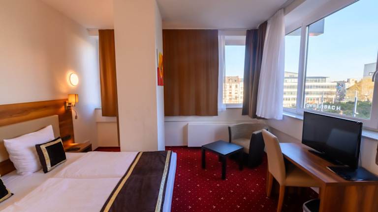 Das Hotel Luna befindet sich im Zentrum von Offenbach und ist ideal gelegen, um die Stadt und ihre Umgebung zu erkunden. Die S-Bahn-Station Offenbach-Marktplatz ist nur 50 m entfernt, so dass Sie bequem die öffentlichen Verkehrsmittel nutzen können. In der Nähe des Hotels gibt es eine große Auswahl an Restaurants und Geschäften, die zum Bummeln und Entdecken einladen. Der Flughafen Frankfurt ist nur 15 km entfernt und kann leicht erreicht werden.