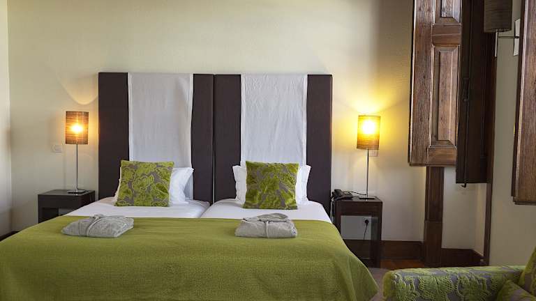 Die Zimmer im Hotel Lusitano sind individuell eingerichtet und bieten eine gemütliche Atmosphäre. Sie verfügen über Holzböden und Himmelbetten, die für eine romantische Stimmung sorgen. Zur Ausstattung gehören eine Minibar, Klimaanlage und kostenfreies WLAN. Die Zimmer bieten auch einen Balkon oder eine Terrasse, auf der Sie den Blick auf die Umgebung genießen können. Die Badezimmer sind mit einer Dusche, Badewanne, Bademänteln und Haartrockner ausgestattet.