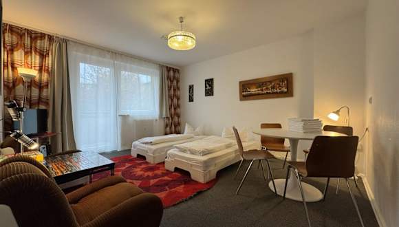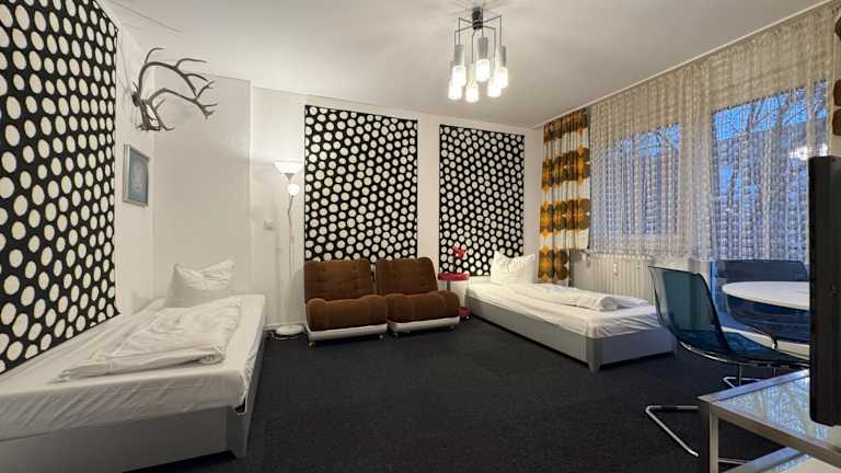 Die Apartments in den MM Central Vintage Family, Handwerker und Monteure Apartments sind geräumig und komfortabel. Sie verfügen über einen Südwestbalkon, auf dem Sie sich nach einem ereignisreichen Tag entspannen können. Die kürzlich renovierten Apartments sind voll ausgestattet und bieten Ihnen alle Annehmlichkeiten, die Sie für einen angenehmen Aufenthalt benötigen. Die moderne Einrichtung wird durch einzigartige Design-Elemente aus den 1960er- und 1970er-Jahren ergänzt, darunter Flower Power- und Weltraummotive.