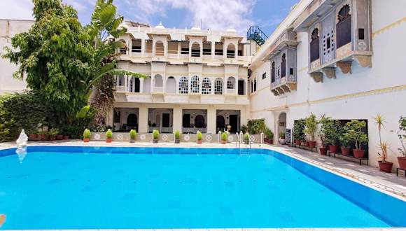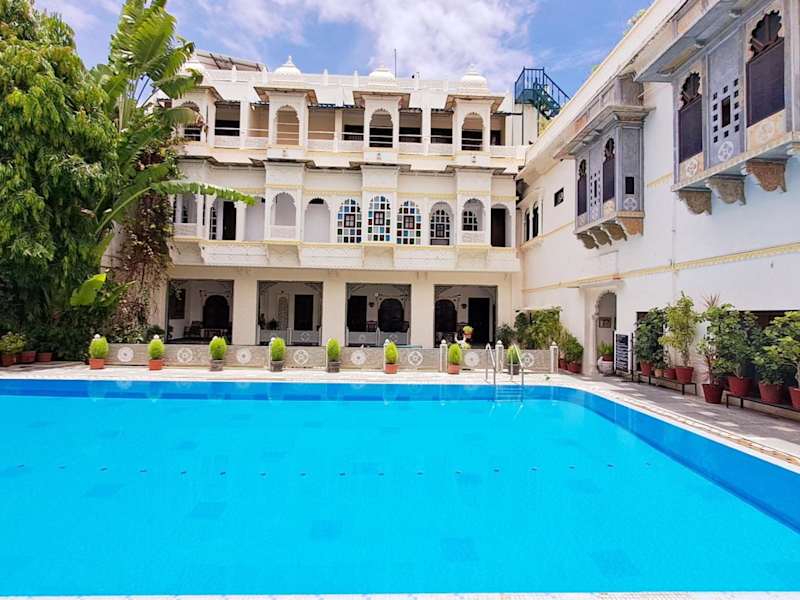 Das Mahendra Prakash in Udaipur bietet seinen Gästen einen angenehmen Aufenthalt in der Nähe des Hanuman Ji Tempels. Das Hotel verfügt über einen Außenpool, ein Restaurant und komfortable Zimmer mit Blick auf den Pool. Kostenfreie Parkplätze stehen zur Verfügung. Genießen Sie eine ayurvedische Ganzkörpermassage oder den atemberaubenden Blick auf den Stadtpalast von der Dachterrasse. Das freundliche Personal hilft Ihnen gerne bei der Organisation von Ausflügen und Besichtigungstouren. Im Restaurant können Sie indische und europäische Gerichte genießen, darunter auch vegetarische Optionen. Das Hotel liegt in der Nähe der Sajjan Niwas Gärten und des Bahnhofs Udaipur City. Der Flughafen Maharana Pratap ist ebenfalls gut erreichbar.