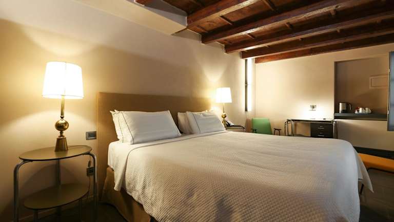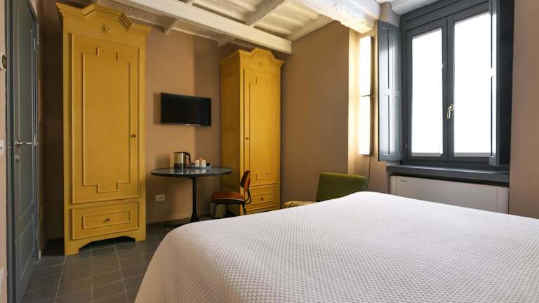 Die Zimmer im Hotel Maison Borella sind einfach, aber elegant eingerichtet und bieten allen Komfort, den Sie für einen angenehmen Aufenthalt benötigen. Jedes Zimmer ist klimatisiert und verfügt über einen LCD-Sat-TV. Die Badezimmer sind mit weichen Bademänteln und Hausschuhen ausgestattet. Einige Zimmer verfügen über charmante Holzbalkendecken und einen Balkon mit Blick auf die Stadt. Hier können Sie sich entspannen und den Blick auf die Mailänder Skyline genießen.