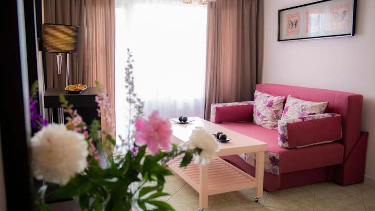 Das Hotel Majestic Mamaia ist die perfekte Wahl für einen Urlaub im Badeort Mamaia. Mit seiner erstklassigen Lage, nur 50 Meter vom Meer entfernt, bietet das Hotel eine Vielzahl von Annehmlichkeiten wie einen Außenpool und ein Fitnessstudio. Die Zimmer sind geschmackvoll mit bunten Bettdecken gestaltet und verfügen über Klimaanlage, Flachbild-TV und Balkon. Genießen Sie Ihr Frühstück auf der idyllischen Terrasse, umgeben von Pflanzen und Blumen. Im Hotelrestaurant können Sie rumänische und internationale Gerichte zum Mittag- und Abendessen probieren und dabei Shows im Hotelgarten genießen.
