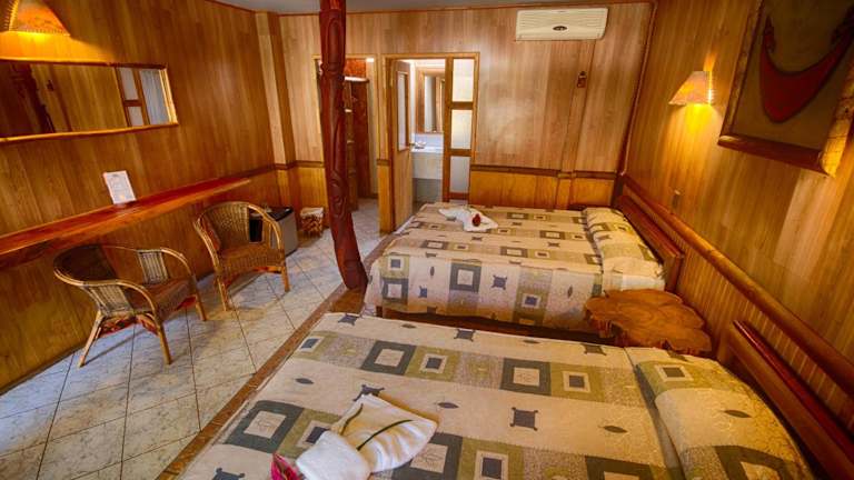 Die Zimmer im Hotel Manavai sind hell und geräumig, um Ihnen einen angenehmen Aufenthalt zu bieten. Jedes Zimmer verfügt über ein eigenes Badezimmer und ist mit allen notwendigen Annehmlichkeiten ausgestattet. Genießen Sie den Komfort und die Ruhe in Ihrem Zimmer nach einem ereignisreichen Tag auf der Insel.