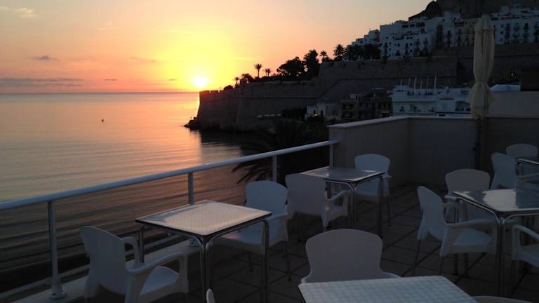 Das Hotel Mare Nostrum befindet sich in erstklassiger Lage direkt am Strand von Peñíscola. Die Altstadt und die beeindruckende Burg sind nur 5 Gehminuten entfernt. Von vielen Zimmern aus genießen Sie einen herrlichen Blick auf den Strand und die Küste. Die Autobahn AP7 ist leicht zu erreichen und der Flughafen Reus sowie die Stadt Valencia sind in höchstens 90 Fahrminuten erreichbar.